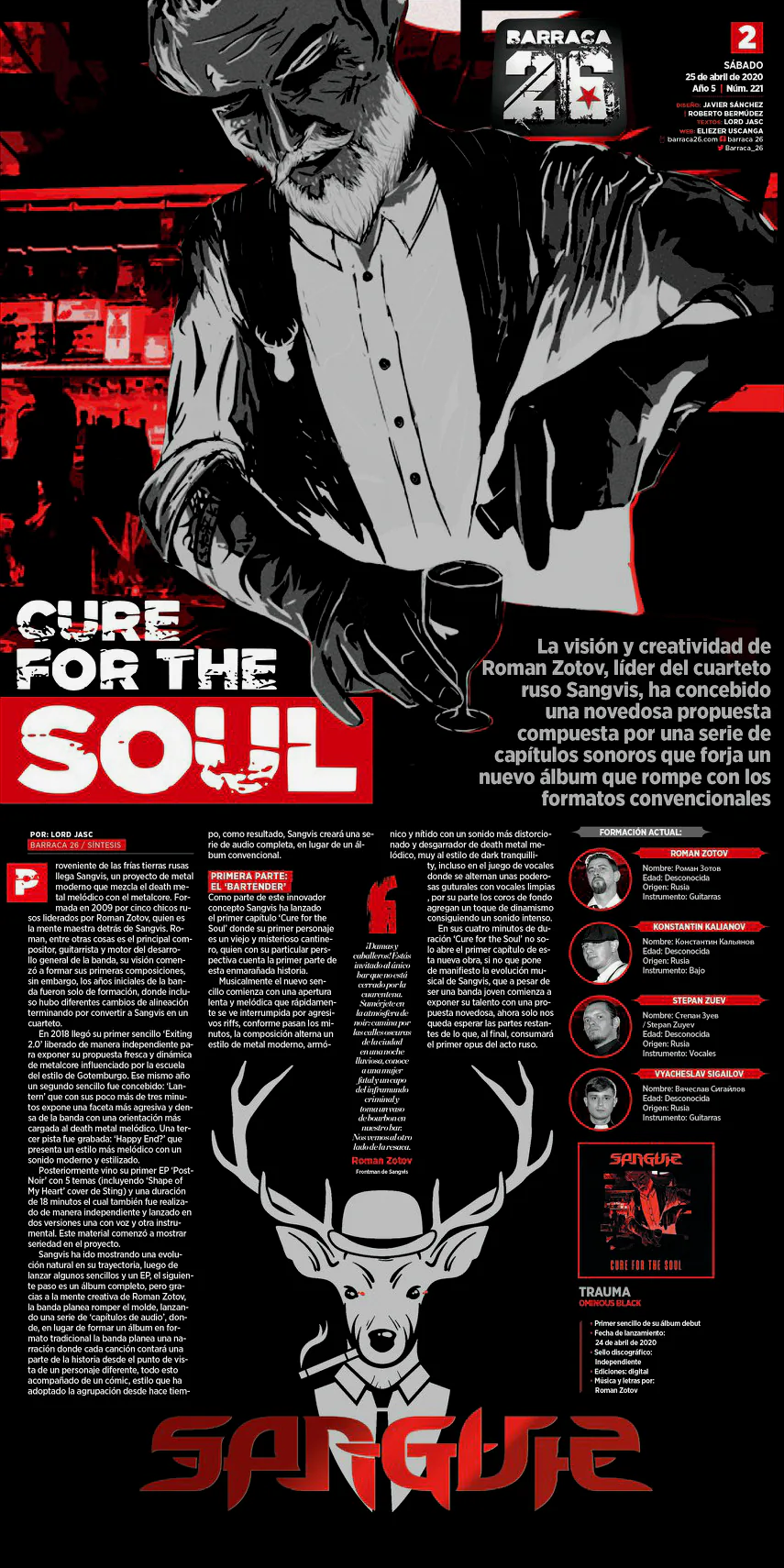 С 2009 года Sangvis превращает музыку в способ повествования, черпая вдохновение в эстетике нуар и раскрывая через звук сложные человеческие переживания. Их песни — мрачные картины, где мелодии стирают грань между личным и кинематографическим.